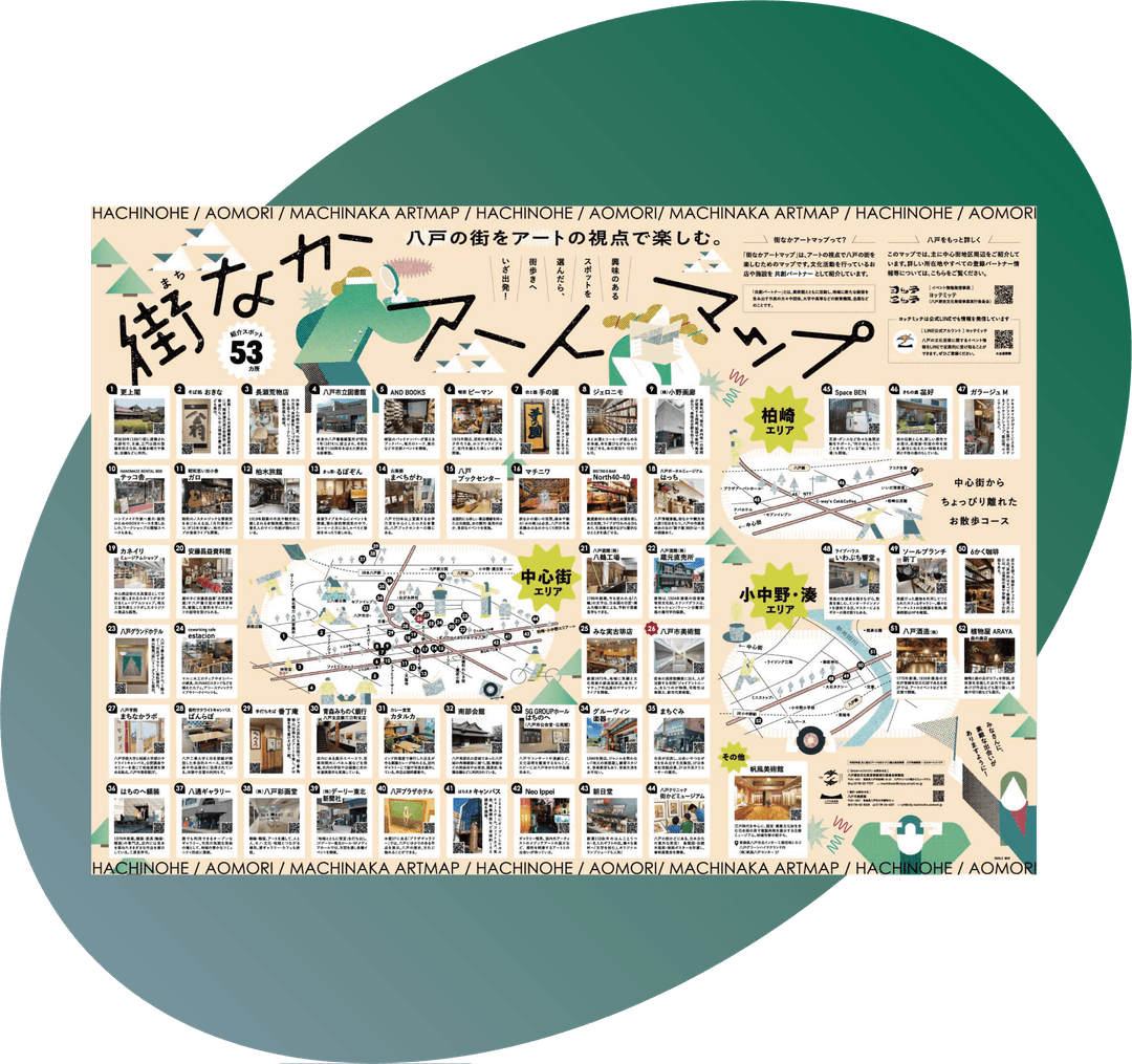 八戸市の市民連携事業として、八戸歴史文化発信事業実行委員会が提案し、八戸市美術館とともに実践している取組みです。地域の文化的なイベント情報の発信を補完するため、情報を収集し、週1回のLINEによる発信とWEB上でチラシの閲覧ができるサービス「ヨッテミッテ」を運営。文化活動を行う街のお店や施設をマップにした「街なかアートマップ」や、美術館を中心に行政と民間の垣根を越えた交流の場も提供しています。